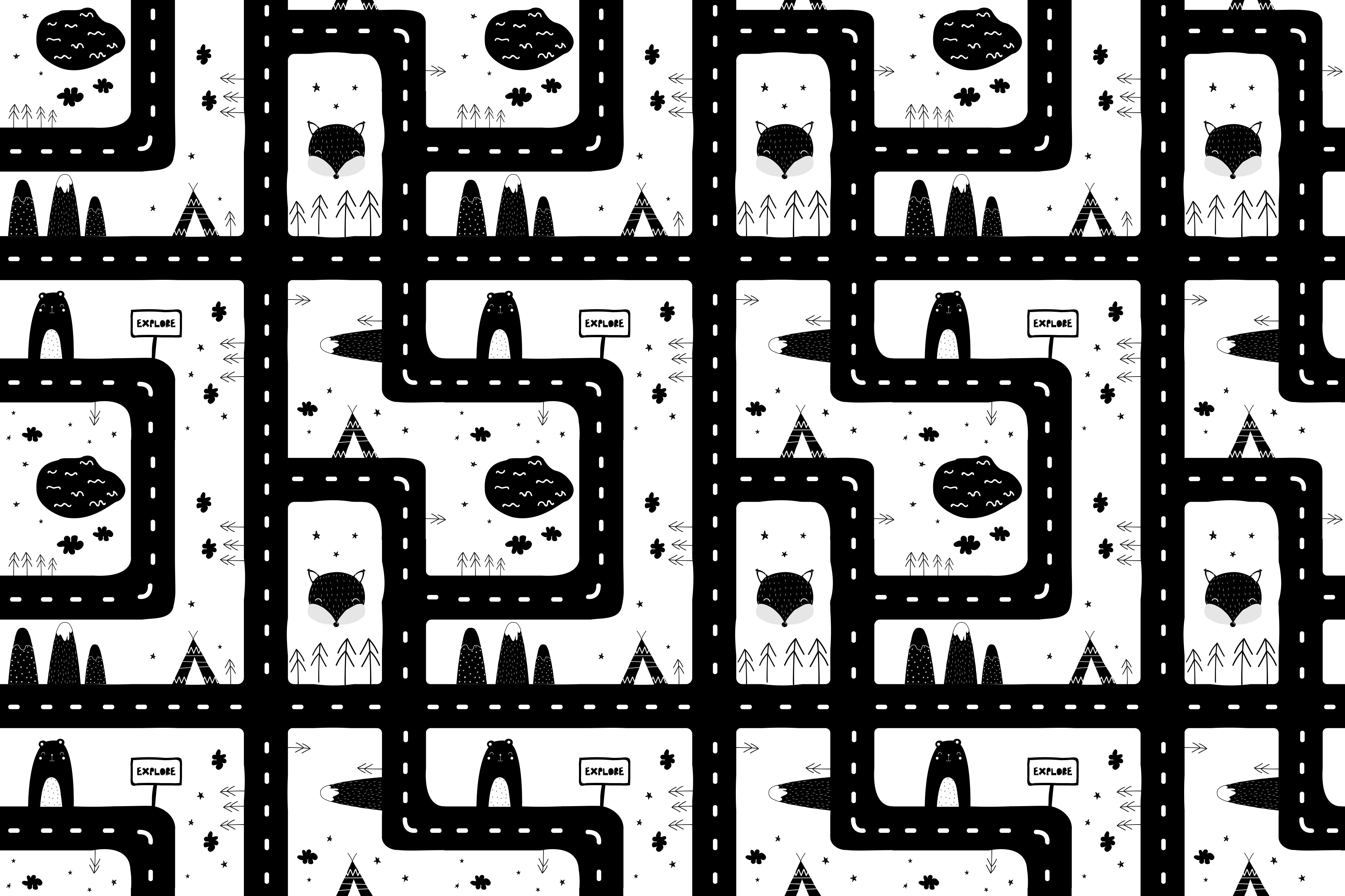 This Monochromatic Cityscape Magic Kids Room Murals in one color is fun and relaxing, perfect for kids' rooms. It has pictures of roads, trees, animals, and little signs to spark your ideas. The simple black-and-white pattern goes with any decor style and can be used in bedrooms, playrooms, nurseries, or other places. It is made of good materials, so it will last and be easy to clean. It can handle everyday experiences. The pattern was carefully thought out, and it will keep the walls looking interesting while still giving them a balanced, well-organized look. Ideal for making a cozy and interesting place that your child will enjoy.