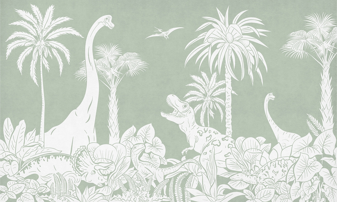 Green dinosaur-themed Monochrome mural for stylish walls.