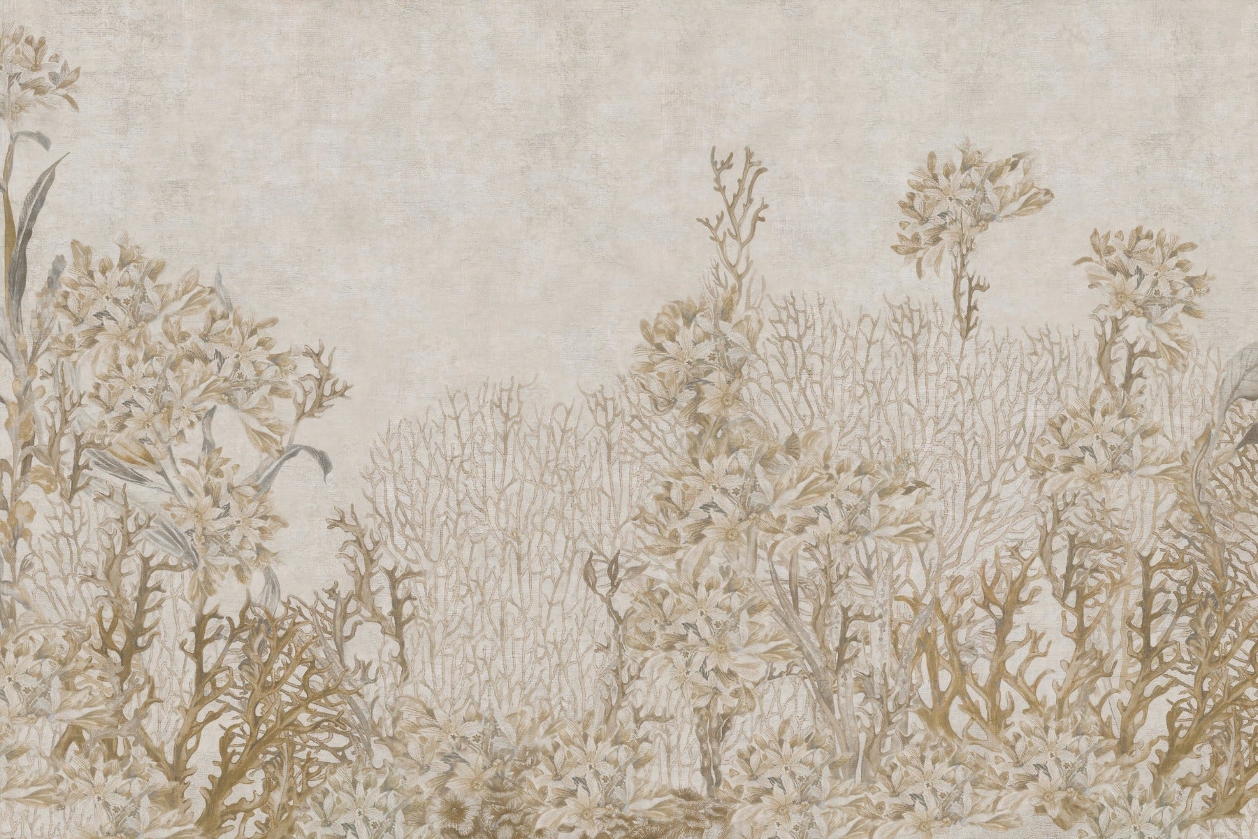 Soft Monotone Sepia Flowers Wallpaper Mural for Bedrooms
