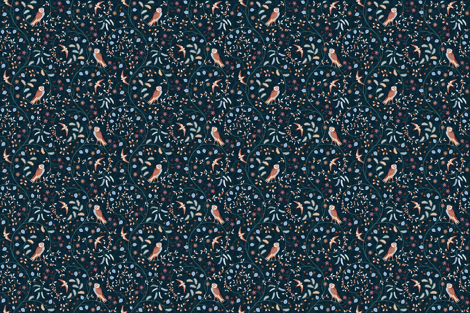 The Owl and Leaves Design Bird Wallpaper for Walls is whimsical, beautiful, and enchanting, with delicate owls sitting among intricate foliage and blooming flowers on a rich dark background, bringing a more vibrant sense to the whole design and visual effect. It is perfect for use in a bedroom, a living space, or as an area in the study because it makes the whole area look pretty charming with an elegant look inspired by nature. The detailed artwork and balanced composition make it a standout choice for creating a cozy and inviting atmosphere. Durable and easy to apply, it's a timeless addition to elevate your interiors.