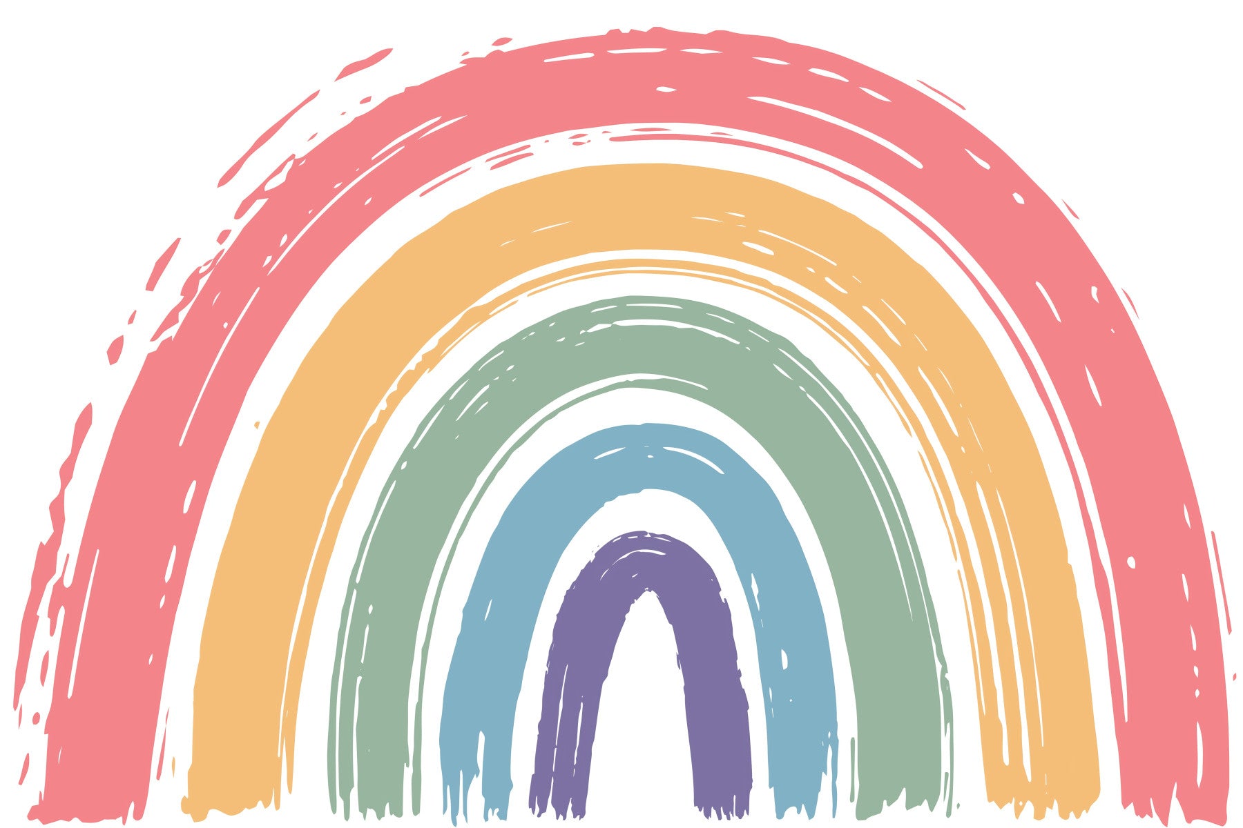 Infuse your space with warmth using this painted rainbow arch. The earthy tones of pink, peach, and green create a cozy yet vibrant feel. This wallpaper for walls design is suitable for kids' rooms, nurseries, or even a fun accent wall in a living area. The playful, hand-drawn quality adds a touch of whimsy that complements modern, bohemian, or eclectic interiors. Brighten your home with a splash of playful color.