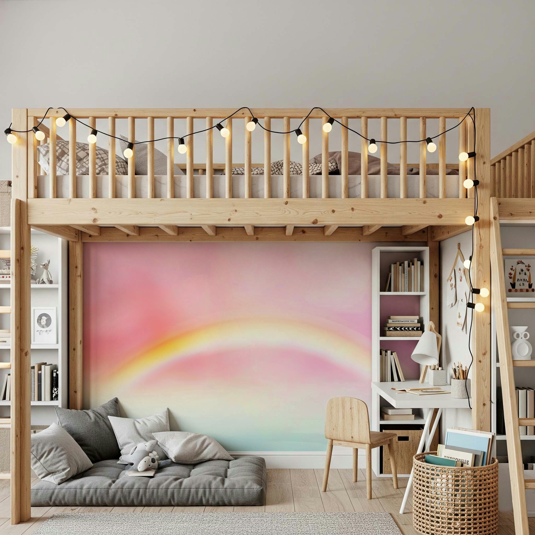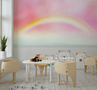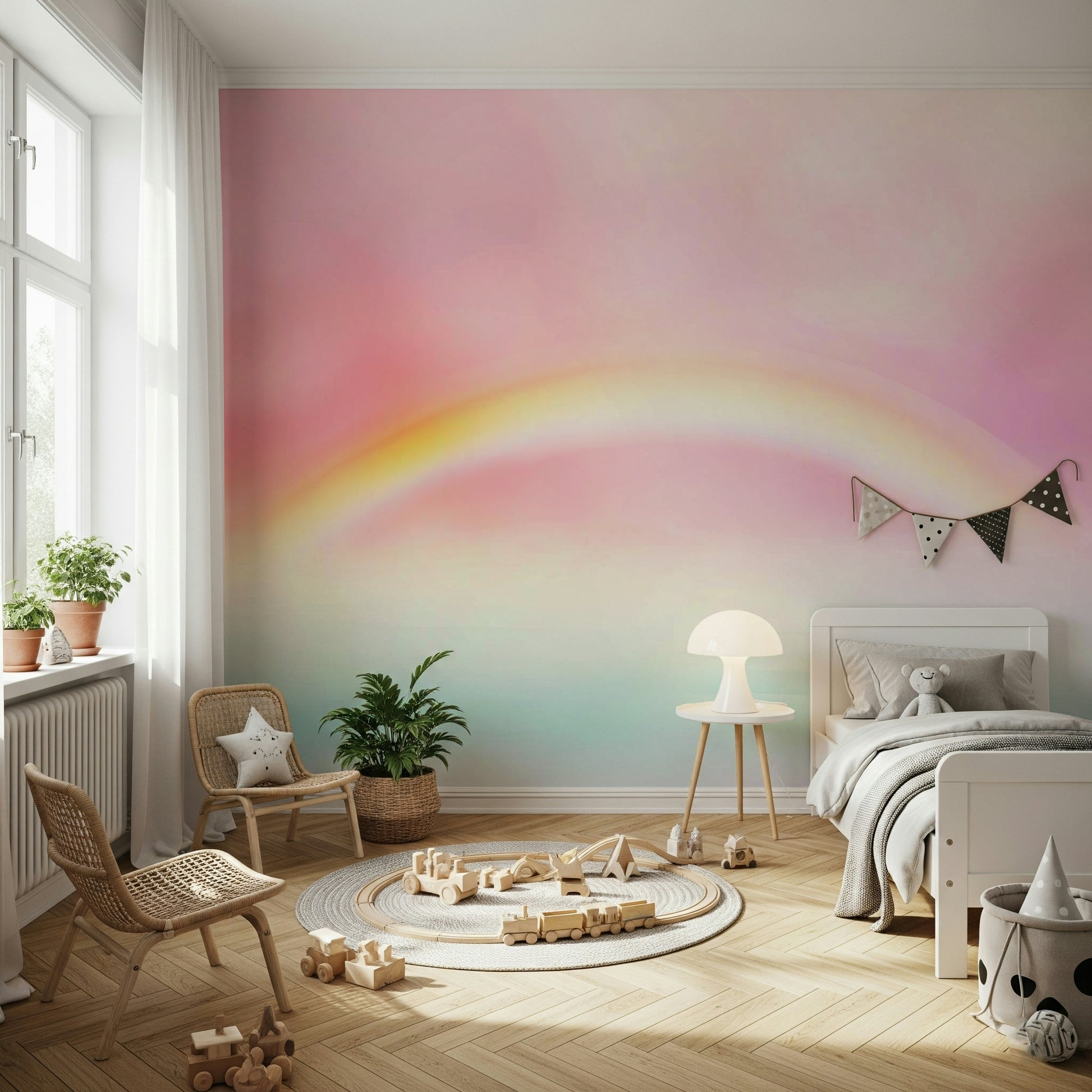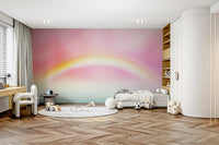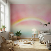 Transform your space with this dreamy gradient wallpaper. Soft hues of pink, blue, and yellow blend seamlessly, creating a tranquil backdrop. The subtle rainbow arc adds a touch of whimsy. This wallpaper for walls is perfect for bedrooms, nurseries, or any space where you want to promote relaxation and a sense of calm. The gentle colors complement a variety of interior styles, from minimalist to modern.