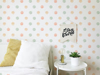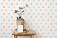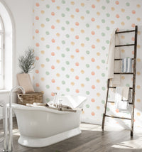 Discover the playful charm of pastel watercolor polka dots wallpaper, a delightful design that infuses your room with a light, airy feel. Each dot is a dab of soft color against a crisp white backdrop, offering a seamless blend of simplicity and whimsy. Ideal for a nursery, home office, or cozy reading nook, this polka dots wallpaper creates a cheerful atmosphere without overwhelming the senses. It's a timeless choice for anyone looking to add a dash of joy to their walls.
