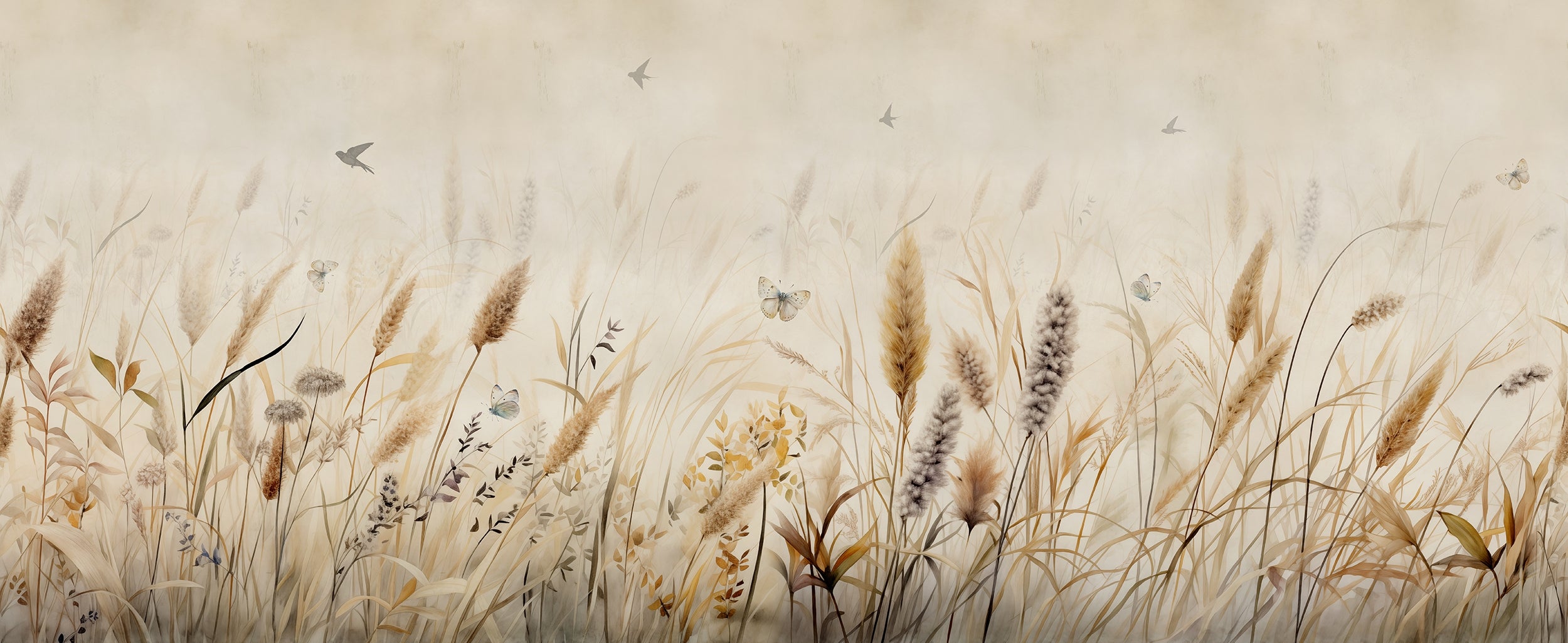 This Pastoral Elegance Butterflies Over Grasses Wallpaper Mural captures the calm serenity of a nature meadow. It carries gentle, earthy colors in the golden grass, dainty butterflies, and light birds in flight with subtle details. It looks lovely in the bedrooms, rooms for living, or reading. It brings a rustic ambiance to your space while adding elegance. The intricate details of foliage and winged creatures bring about movement and life on your walls. This mural is the perfect choice for those searching for a calming, nature-inspired aesthetic that complements modern or vintage decor styles. Easy to apply, it effortlessly elevates your interior with timeless grace.