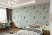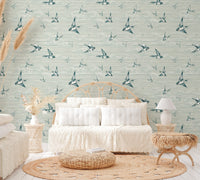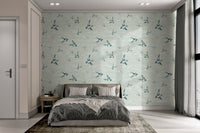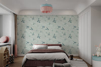 This peaceful blue birds wallpaper mural enriches any room beautiful bluebirds fly over a gentle, soft sky. The pattern is absolutely natural and very pacifying. It's ideal for rooms that need to be mildly visually present. It's perfect for a bedroom, a living room, or a reading corner. It will look great in many interior styles, and the neutral sky-blue background will combine well with most color schemes. Bring a little quiet beauty into your life. Gather the peaceful blue birds wallpaper mural for your house today.