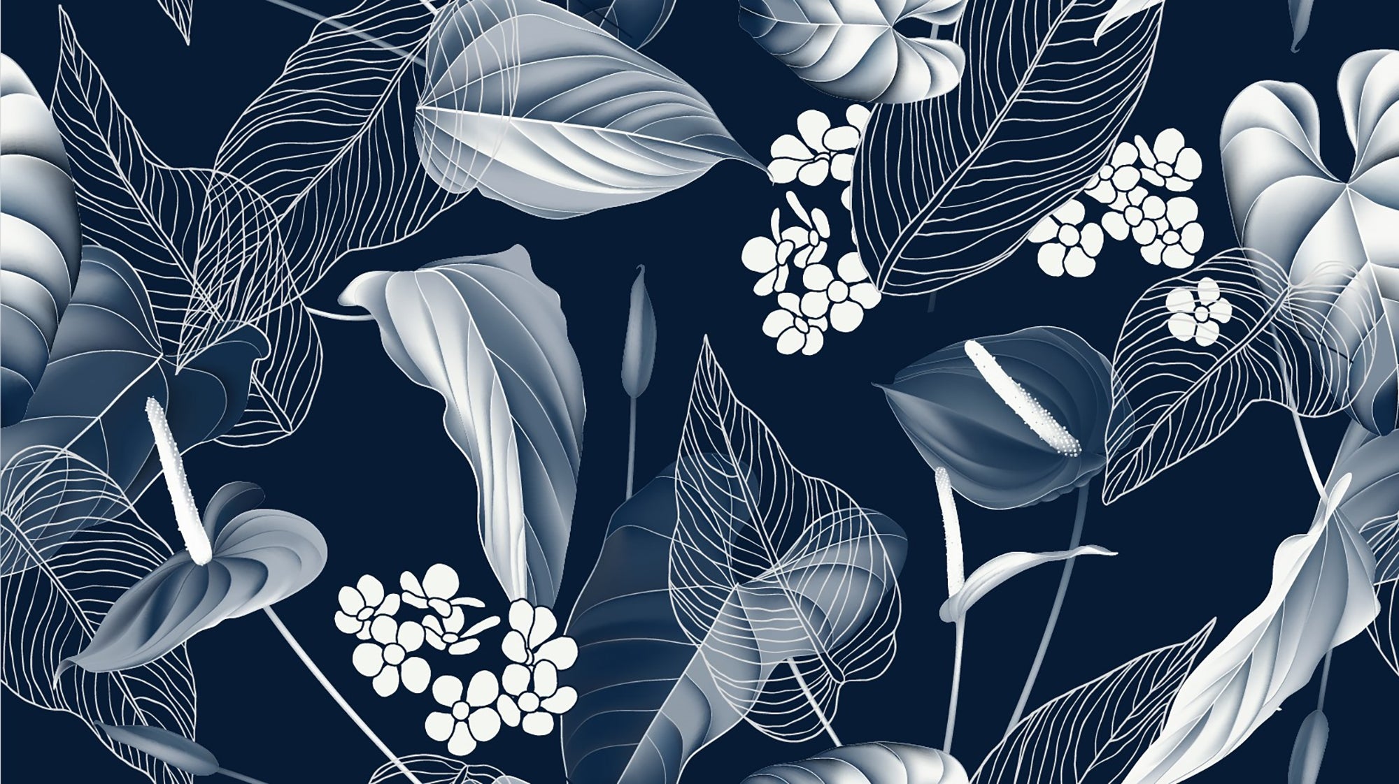 Sophisticated dark blue wallpaper mural design
