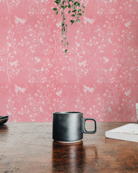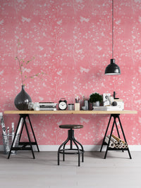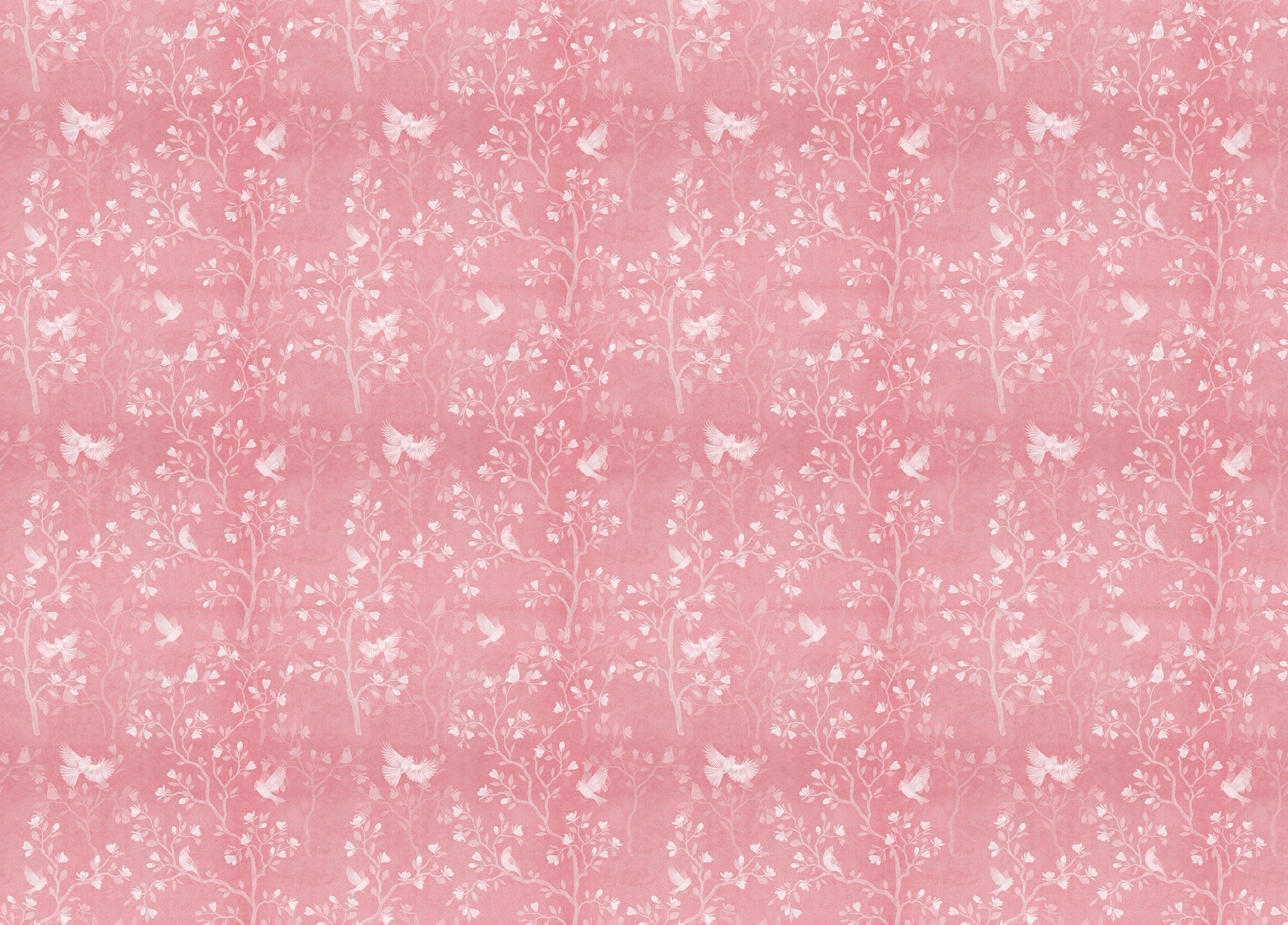 Pink Color Chinoiserie Pattern Magnolia Tree Birds Wallpaper