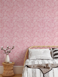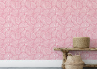 Pink Color Hand Drawn Paisley Ornament Wallpaper