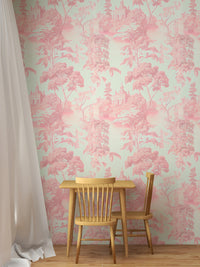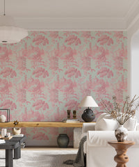 Discover the allure of our pink toile tropical wallpaper, a fusion of classic toile artistry and tropical vibrancy. This pink wallpaper is an instant favorite for those who appreciate a touch of elegance combined with a lively pattern. Envision your walls wrapped in this stunning print, where every glance is a visual feast of lush scenes and delicate pink hues. It's not just wallpaper; it's a statement of sophistication and joy. Perfect for creating a captivating backdrop in any room, our wallpaper is the epitome of chic and spirited design.