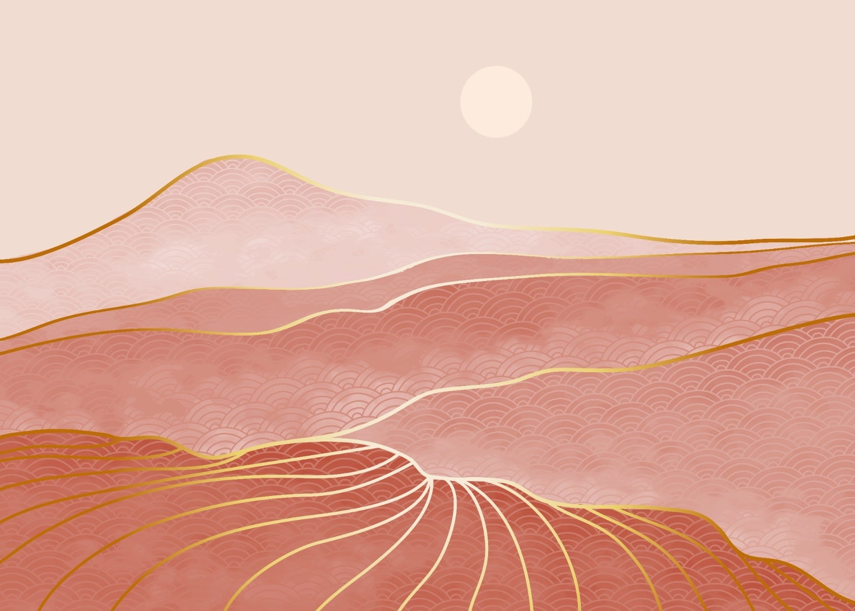 Pink gold mountain mural