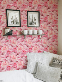 Pink Peonies Roses Wallpaper For Bedroom Wall Decor