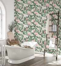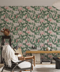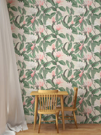 Bring the outdoors in with our pink and white anise magnolia flowers leaf wallpaper. This design captures the delicate dance of magnolia leaves and blossoms, creating a harmonious backdrop that complements any room. Perfect for those who appreciate nature's effortless elegance, this leaf wallpaper weaves a subtle, organic tapestry across your walls, infusing your home with a fresh, blossoming spring vibe all year round. It's a simple, serene touch that connects your environment to the natural world in the most stylish way.