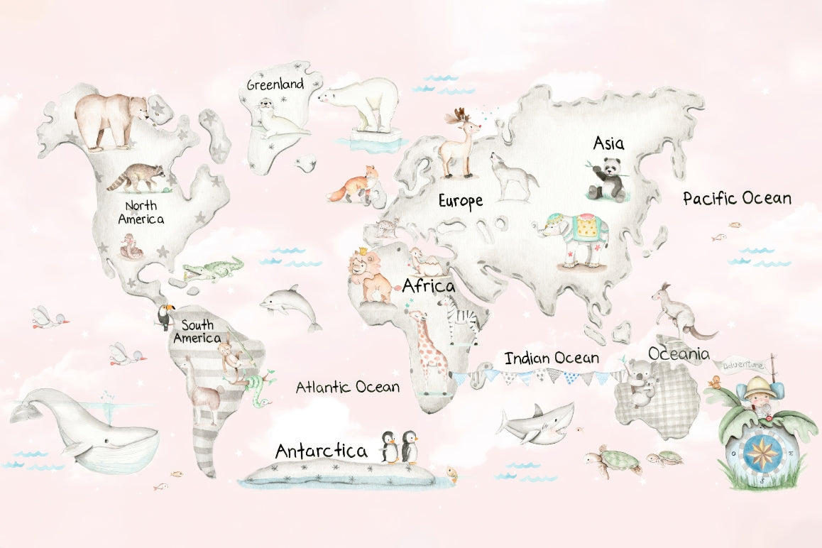 Brighten up any kids room with our playful global wildlife wallpaper mural This vibrant design features friendly animals from every continent, engaging children's curiosity about the world's diverse species. Ideal for educational purposes, it creates a lively yet calming environment perfect for playtime and learning. Made from high-quality materials, this kids room mural wallpaper ensures a durable and eye-catching finish. Each illustrated animal sparks stories and questions, turning your child's room into a globe-trotting adventure. Easy to apply, this mural promises a quick yet transformative makeover. Give your little explorers a delightful backdrop to fuel their imagination!