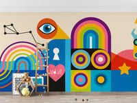 Playful abstract urban mural wallpaper design