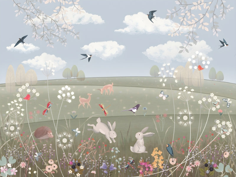 Playful wildlife wallpaper mural for kids
