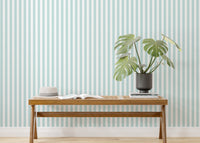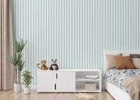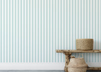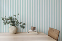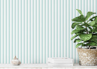 Preppy Wide Vertical Stripe Turquoise and White Color Wallpaper