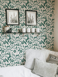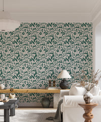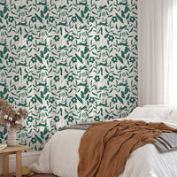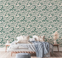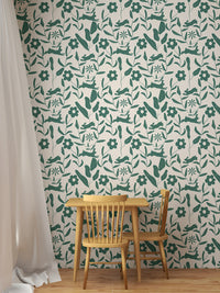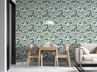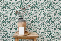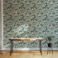 Rabbit Pattern Floral and Leaves Scandi Wallpaper