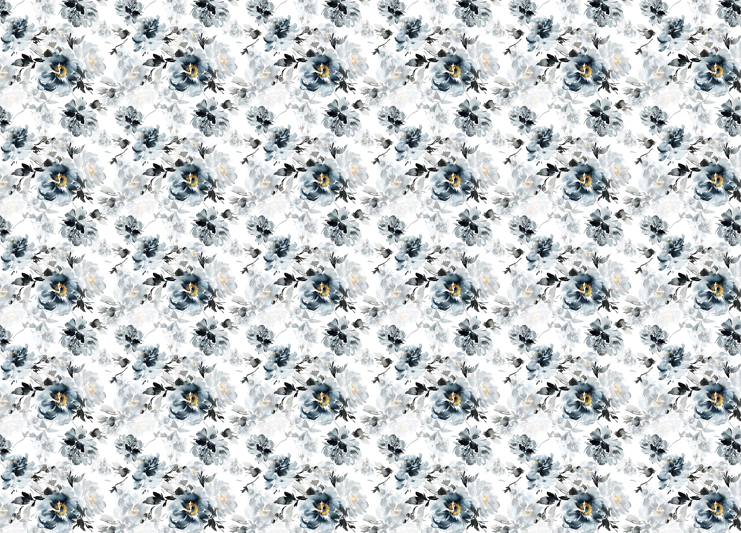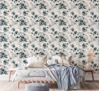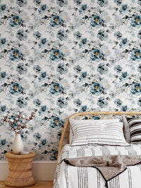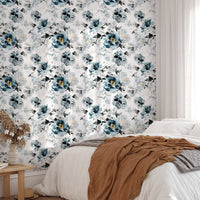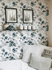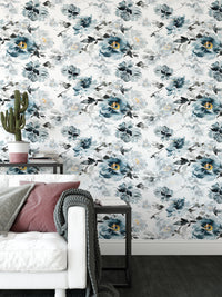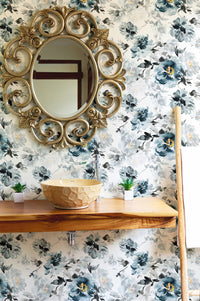 Removable Watercolor Flower Handmade Indigo Wallpaper