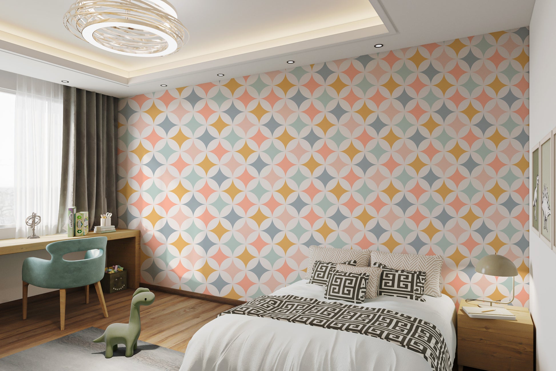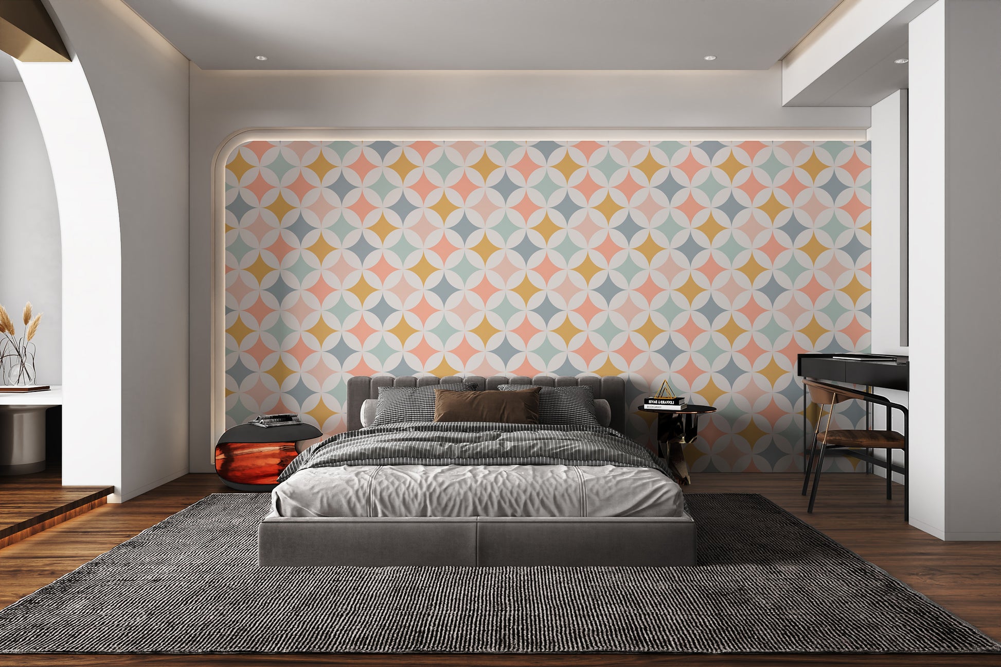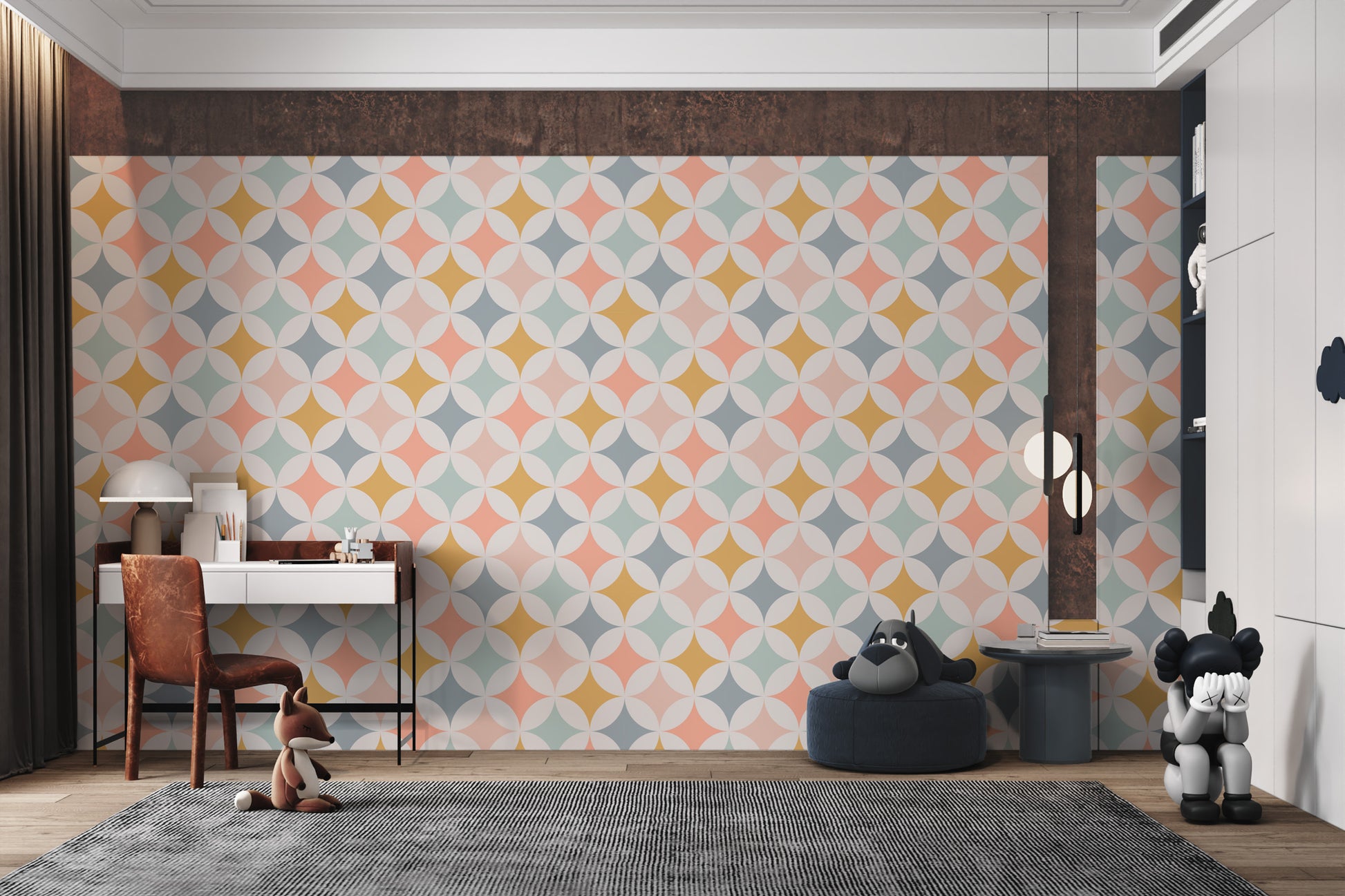 Bring characters to your interiors with retro circles pattern wallpaper by adding the classic geometric pattern in soft pastels. This is perfectly fitting for anyone who reaches for an elegant and lively vibe that doesn't have to give up on sophistication. It's quite a retro-inspired design that works beautifully for a bedroom, living room, or office. The retro circles pattern wallpaper will surely be beautiful with a classic, modern touch. It brings lovely charm to a room, and this beautiful mural provides walls with a refreshing, bold look. Order your mural today for a lively update.