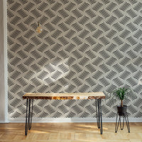 Revamp your dining area with the ripple monochrome geometric waves wallpaper. This dining room wallpaper's captivating pattern infuses a modern, artistic flair into your meals. Its timeless black and white design seamlessly complements various decor styles, from classic to contemporary, ensuring your gatherings are surrounded by a chic, visual feast. The wallpaper's durable quality promises long-lasting elegance, making it a smart choice for a dining setting. Perfect for those looking to refresh their walls with a touch of sophistication, this wallpaper is a subtle yet striking backdrop for memorable dinners.