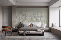 Rising white orchids mural with draped elegance and green hues.