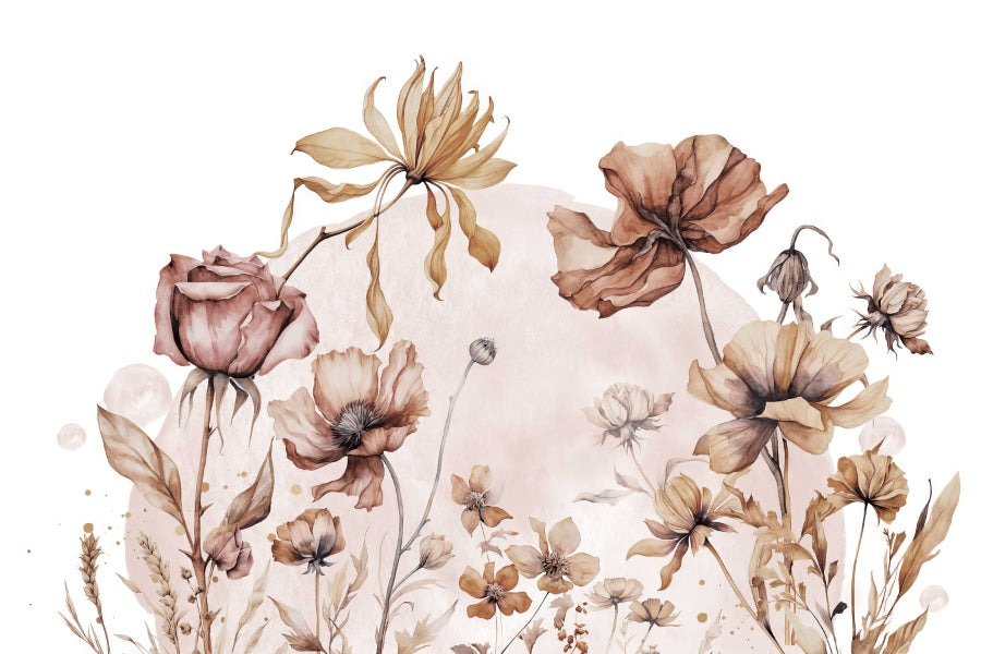 Rustic Wildflowers Wall Mural brings a minor nature into a space. It creates a scene with a few wildflowers drifting softly against an earthy background, enhancing the walls' peaceful aura in any room. Be it a bedroom, living room, or hallway, the design brings a natural, organic feel of beauty to your walls. The soft hues and floral motifs are pretty muted and can, therefore, define most decor styles easily. It is a simple flower wallpaper that instantly comes with a rustic, down-to-earth feel as it brightens up the home.