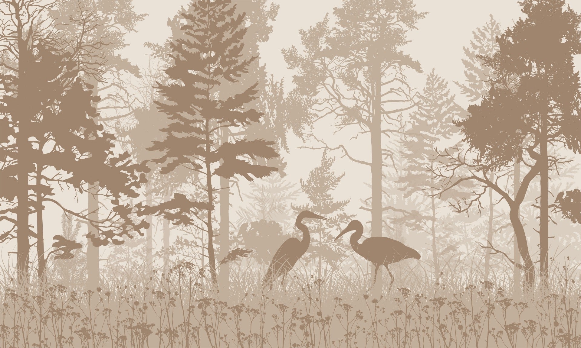 Sepia Forest Heron Bird Wallpaper Murals. Bring serenity to your home from nature. The beautiful design captures a tranquil forest scene with heron birds in soft, sepia tones for an old-fashioned yet timeless effect. Great for creating the perfect peaceful atmosphere, it will surely add depth and character to any living or bedroom space. Made with easy-to-apply peel-and-stick technology, it’s simple to install and can be removed without damaging walls. Whether you want to refresh your decor or create a focal point, this nature-inspired mural brings your home a sophisticated, earthy charm.