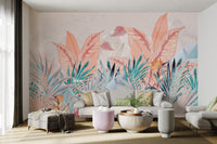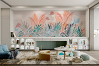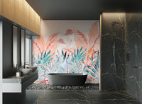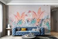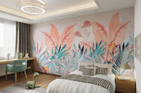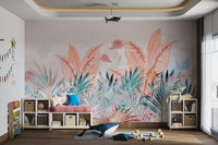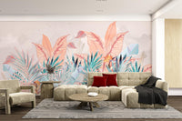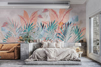 Our misty tropical leaf wallpaper mural features soft pastel shades and intricate banana leaves set against a mountain mist backdrop. This mural is an ideal choice for those who love nature-inspired designs and appreciate subtle elegance. The muted colors make it adaptable for various interiors, bringing a calming vibe to bedrooms, living rooms, or offices. With its beautiful botanical elements and serene aesthetic, this wallpaper mural is both soothing and stylish. Get yours now and experience free delivery.