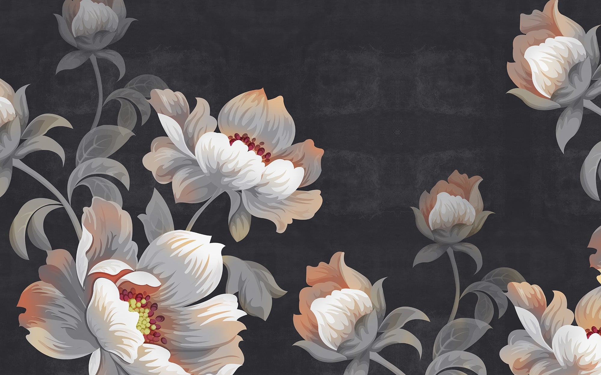 Sophisticated wall mural featuring a gray flower oasis theme.