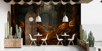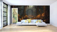 Step into a chilling Halloween scene with this Spooky Pumpkin Forest Wallpaper. Twisted trees, glowing pumpkins, and a misty path set the mood for a haunted forest vibe. Ideal for those who love eerie visuals, this forest wallpaper brings a bold seasonal twist to any room. The rich details and dark tones make it perfect for Halloween parties or year-round spooky themes. Whether it’s for a kids’ room, game area, or hallway, it adds a fun and frightful energy to your walls. Let the shadows, fog, and carved faces set the scene for a truly unforgettable backdrop.