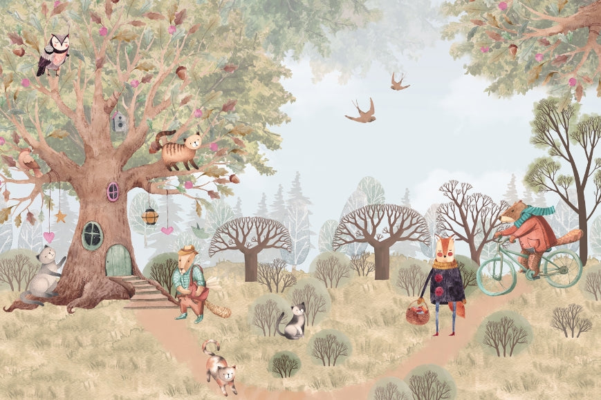 element="main">The storybook animals mural is a piece that captures the young imagination. It brings a whimsical woodland scene right onto your wall. Featuring friendly animals playing around, this piece is a vibrant backdrop for endless storytelling. It is perfect for any childs room adding a touch of magic to foster a love for nature and adventure. From the little mischievous raccoon to the wise old owl, each detail will call for the child's dreams and imagination, which he can play with the new forest friends. Enter an enchanting world with this breathtaking kids' room mural wallpaper.