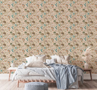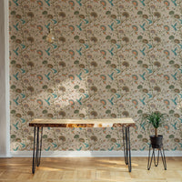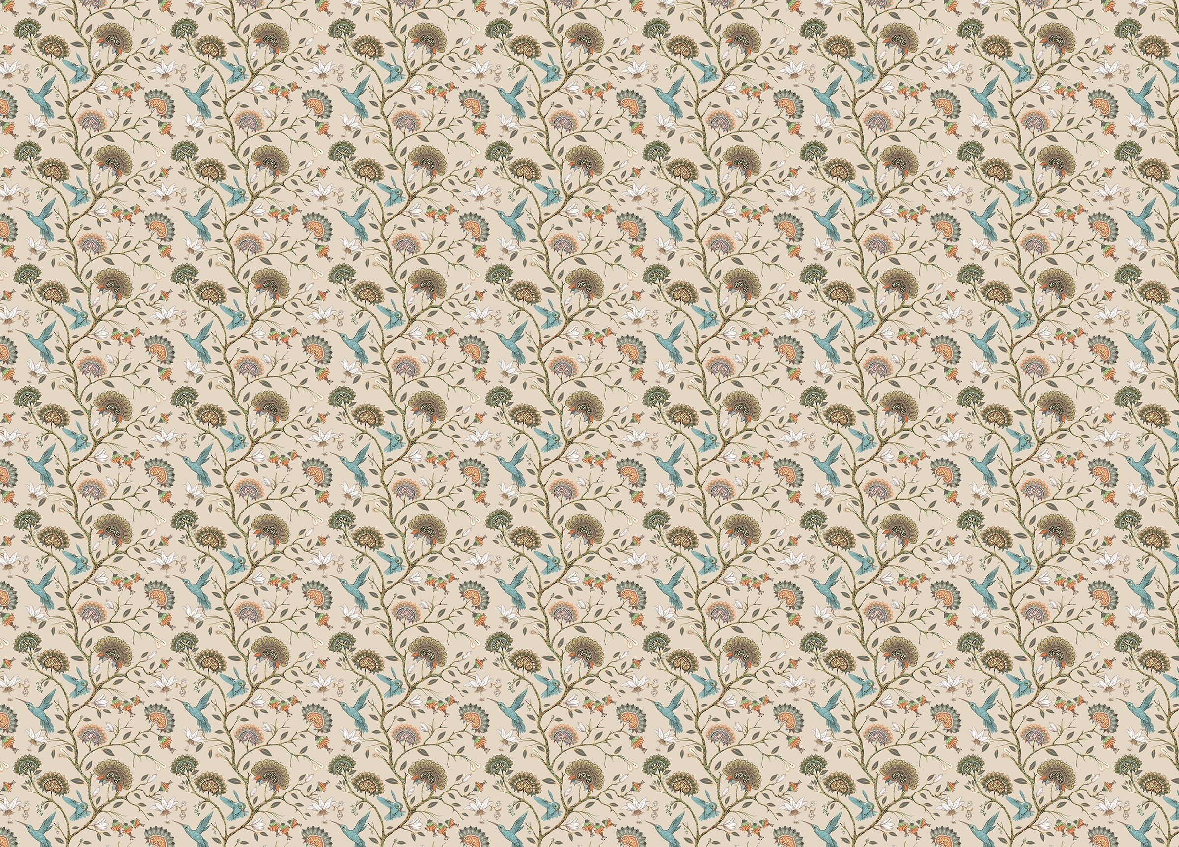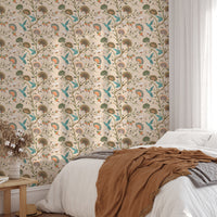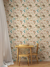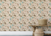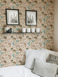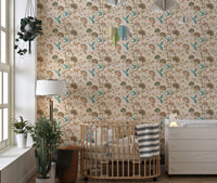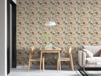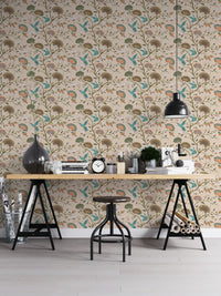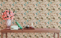 Delight in the understated charm of our stylized flowers and humming birds blossom garden wallpaper flit in a harmonious garden scene. This beige wallpaper design infuses your room with a touch of nature's serenity without overwhelming the senses. It's an ideal backdrop for those who appreciate a blend of contemporary style and the timeless beauty of a floral motif. The subtle hues ensure versatility, complementing an array of interior palettes and themes. Whether you're creating a focal point or a discreet nook, our wallpaper promises a fresh, botanical vibe.