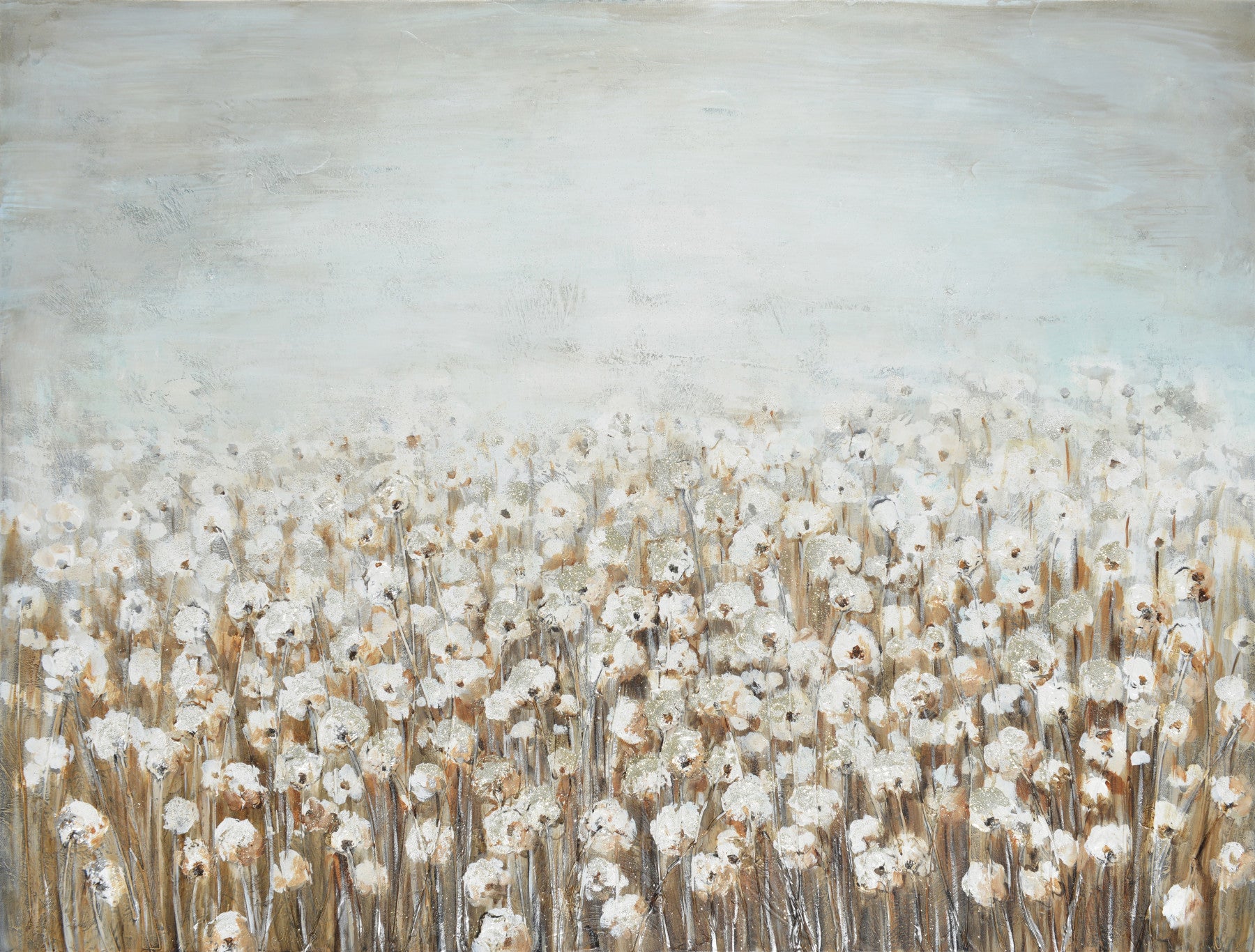 Immerse yourself in the serene beauty of the "Textured Cotton Field" wallpaper. This artwork presents a dreamlike expanse of cotton plants, their fluffy white bolls rendered with rich texture and depth. The delicate interplay of light and shadow across the field creates a calming, ethereal atmosphere. Soft, neutral tones of beige, brown, and white blend seamlessly, complemented by a hazy, light-blue sky, lending a sense of spaciousness and tranquility to any room. The textured effect adds a tactile dimension, inviting you to reach out and touch the cotton's soft surface. Perfect for creating a peaceful and sophisticated ambiance, this wallpaper is an ode to nature's simple elegance. Elevate your space with the understated charm of the "Textured Cotton Field", a visual sanctuary for the modern home.