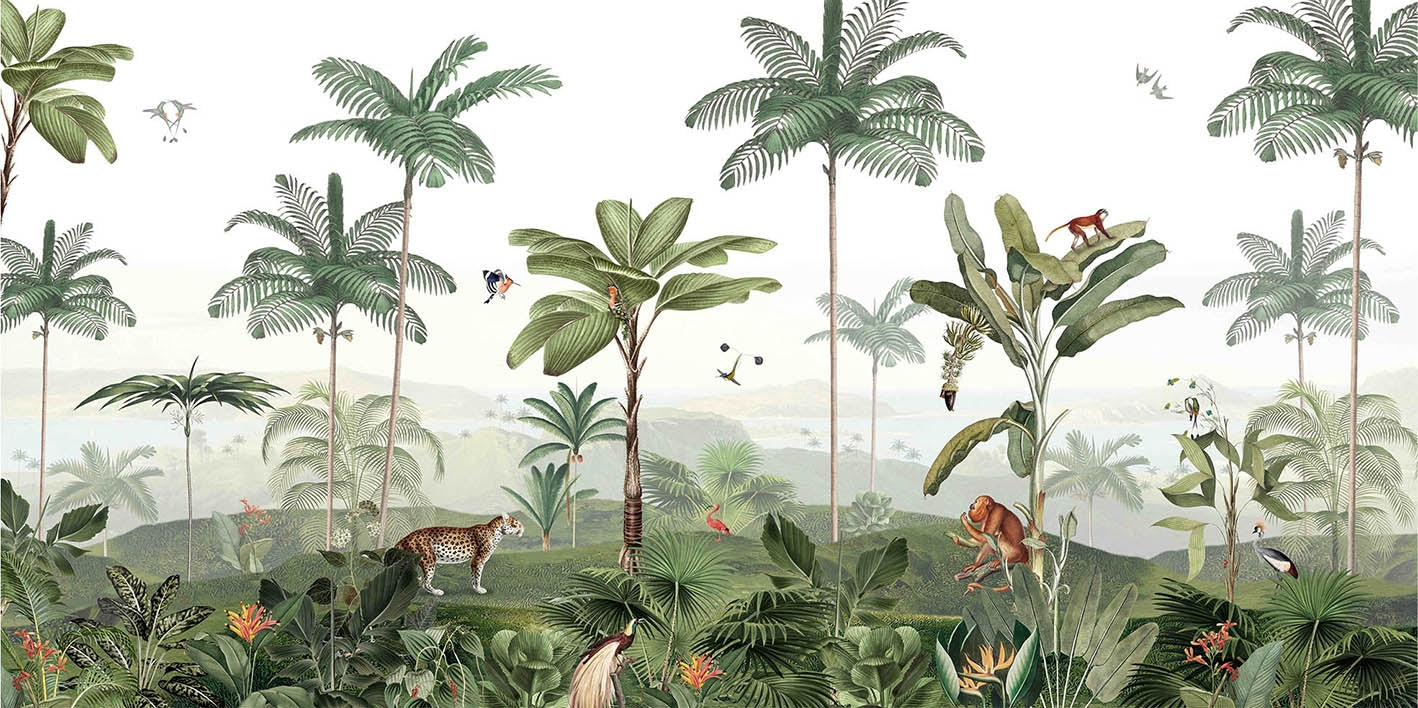 Thrilling Tropics wall mural for lush, tropical interiors.