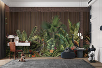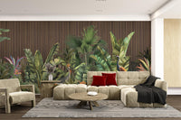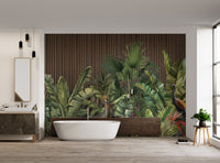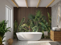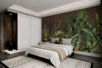 Bring the tropics to your space with this botanical wallpaper mural. This design consists of lush, vibrant green leaves, banana and palm fronds, wildly colored tropical flowers, and a bold crowned crane bird amidst all that foliage. The vertically striped background adds a modern contrast to this bold choice of accent wall of natural elements. This tropical wallpaper mural is perfect for the appearance of a green-themed backdrop that enhances your room with a lively yet peaceful atmosphere. Enjoy free delivery with it.