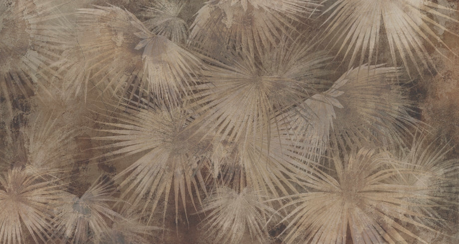 Tropical Elegance Wallpaper Mural combines earthy hues with sizable palm leaf motifs. This tropical wallpaper looks great in bedrooms, reading nooks and other areas where natural textures are preferred. Its gentle, aged appearance from the faded detail makes it perfect for anyone who enjoy rustic, nature-inspired wall murals. Its subdued color palette makes it easy to pair with hardwood furniture, rattan decor or indoor plants. Whether you like muted jungle motifs or serene interiors, this painting fits in flawlessly without being intrusive. A great choice for someone who prefers muted colors to bold ones