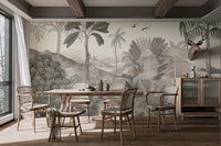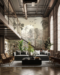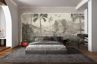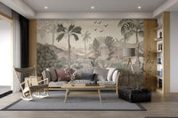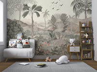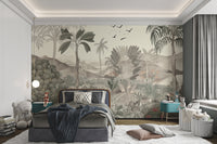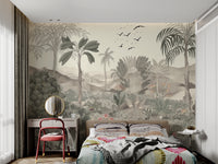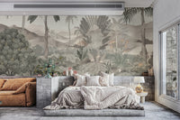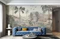 A beautiful exotic mountain landscape with lush greenery and tall palm trees characterises this forest wallpaper. When you are a nature lover, this is the perfect mural for adding elegance to any room with subtle tones and soft colors while bringing the outside in. This mural is created for a sitting room or bedroom to provide you with a refreshing burst of greenery. Purchase today and enjoy free shipping.