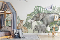 Whether you're looking to create a bold statement wall or decorate an entire room, this tropical jungle tiger elephant wallpaper is sure to impress. It incorporates elements of tropical, jungle, and animal themes, making it a versatile and timeless design that will be sure to delight for years to come.