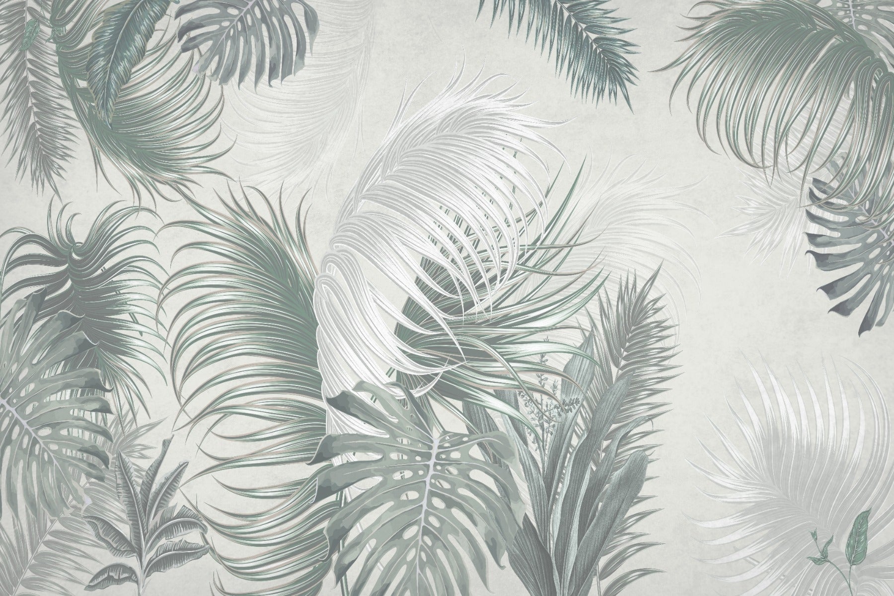 Set in a serene, tropical setting by the Gray Large Tropical Palm Leaves Wallpaper Mural. Oversized, elegant palm leaves in soft gray tones characterize the interior of this mural and, at the same time, bring a sophisticated yet relaxing atmosphere to any room, perfect for living rooms, bedrooms, or even offices. The subtle gray background will complement many different decoration styles, while the large tropical leaves add depth and interest to the view. Made of superior, easy-to-peel material, it's user-friendly in installation and detachment, thereby making it perfect for those with a keen desire for beautiful and versatile wallpapers. Add a touch of serenity to your environment with the gray tropical palm leaves wallpaper.