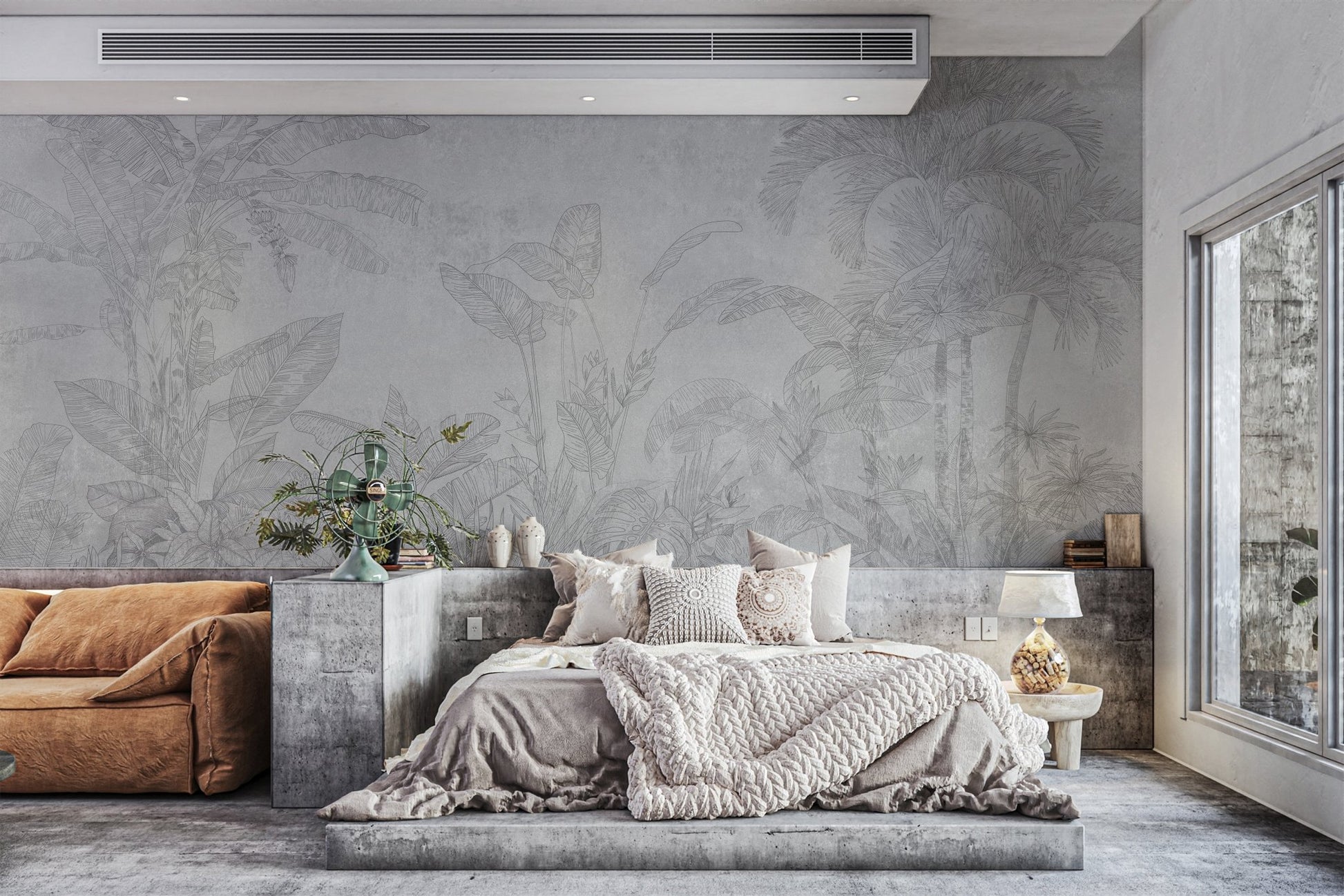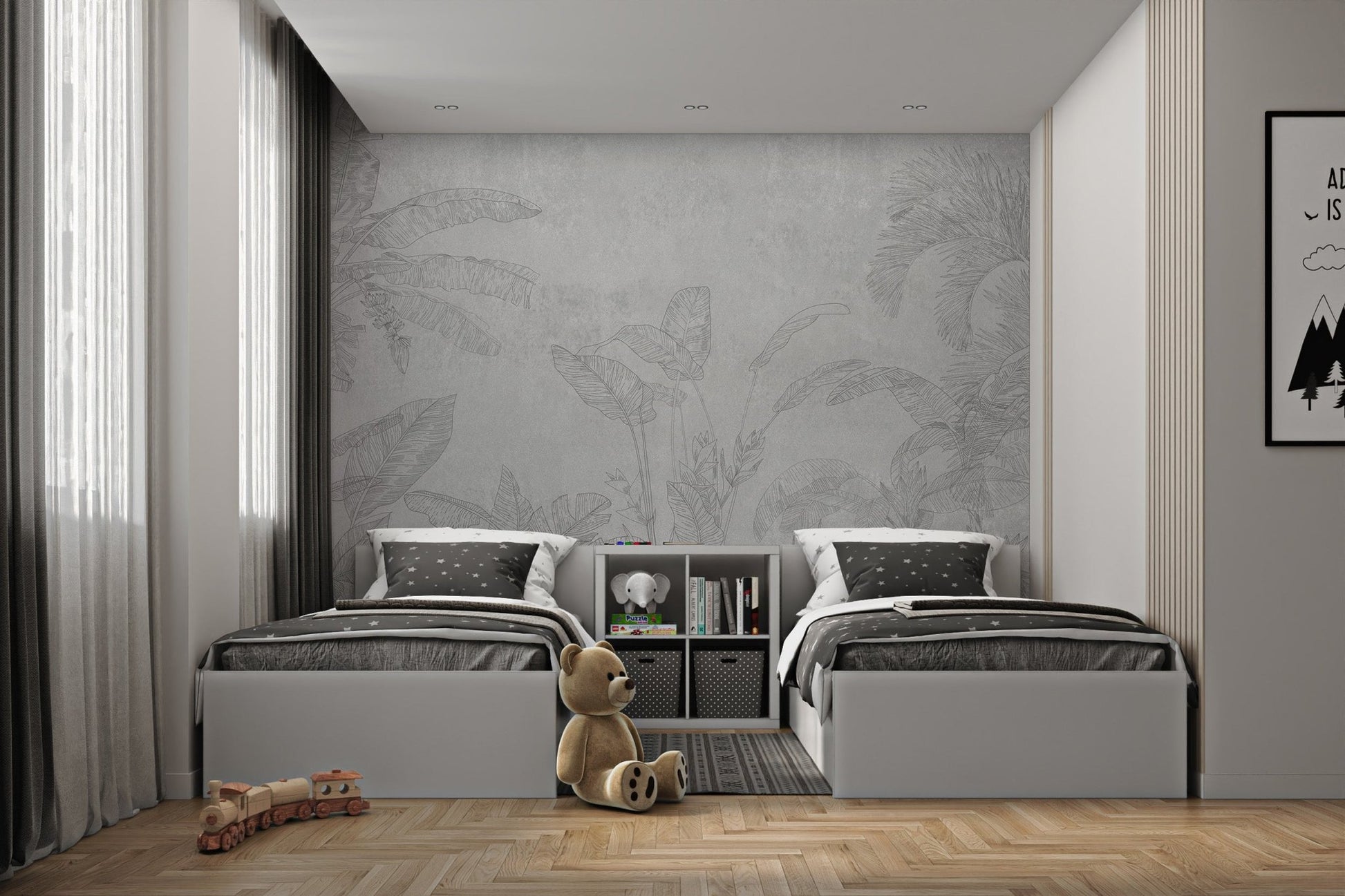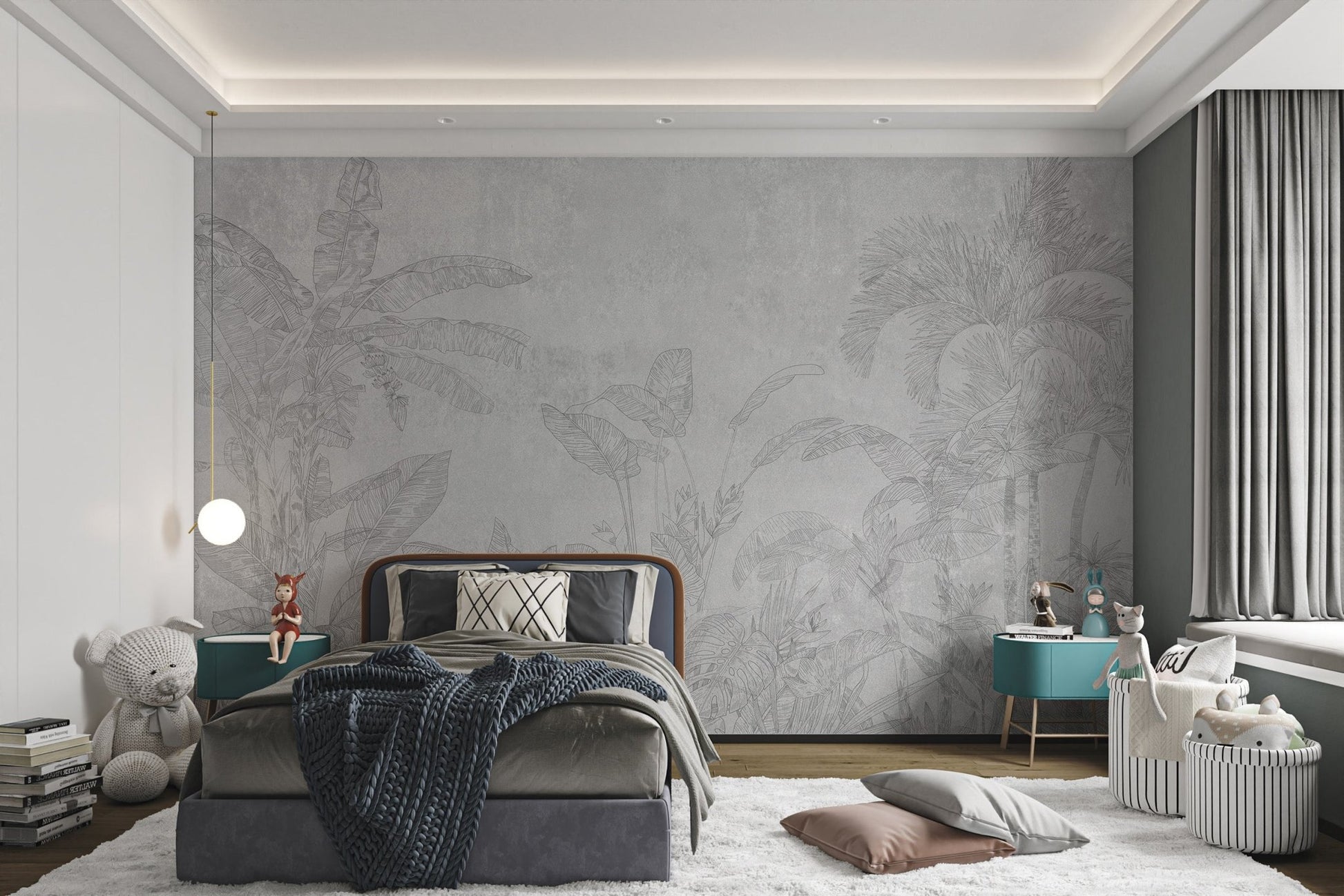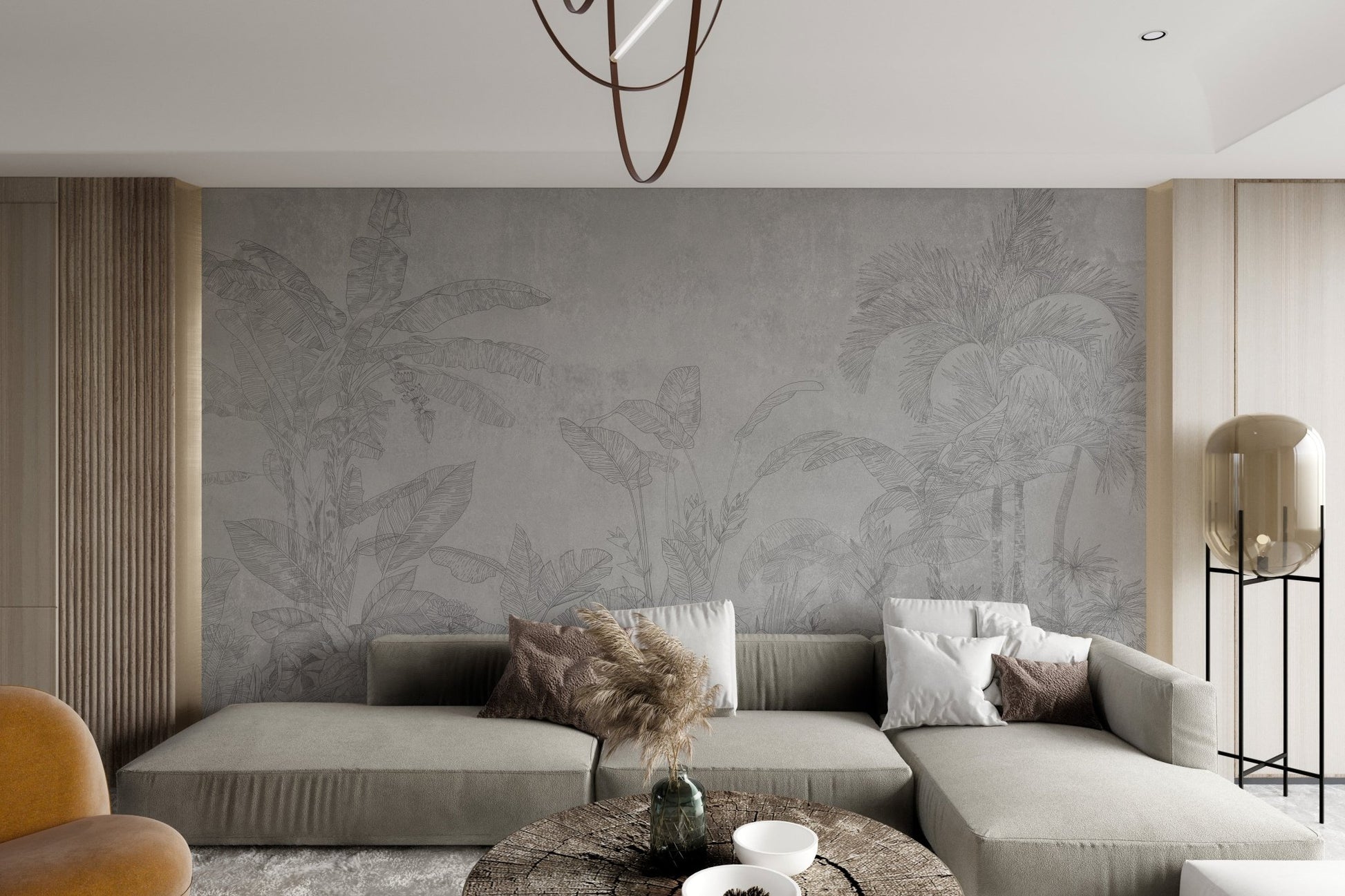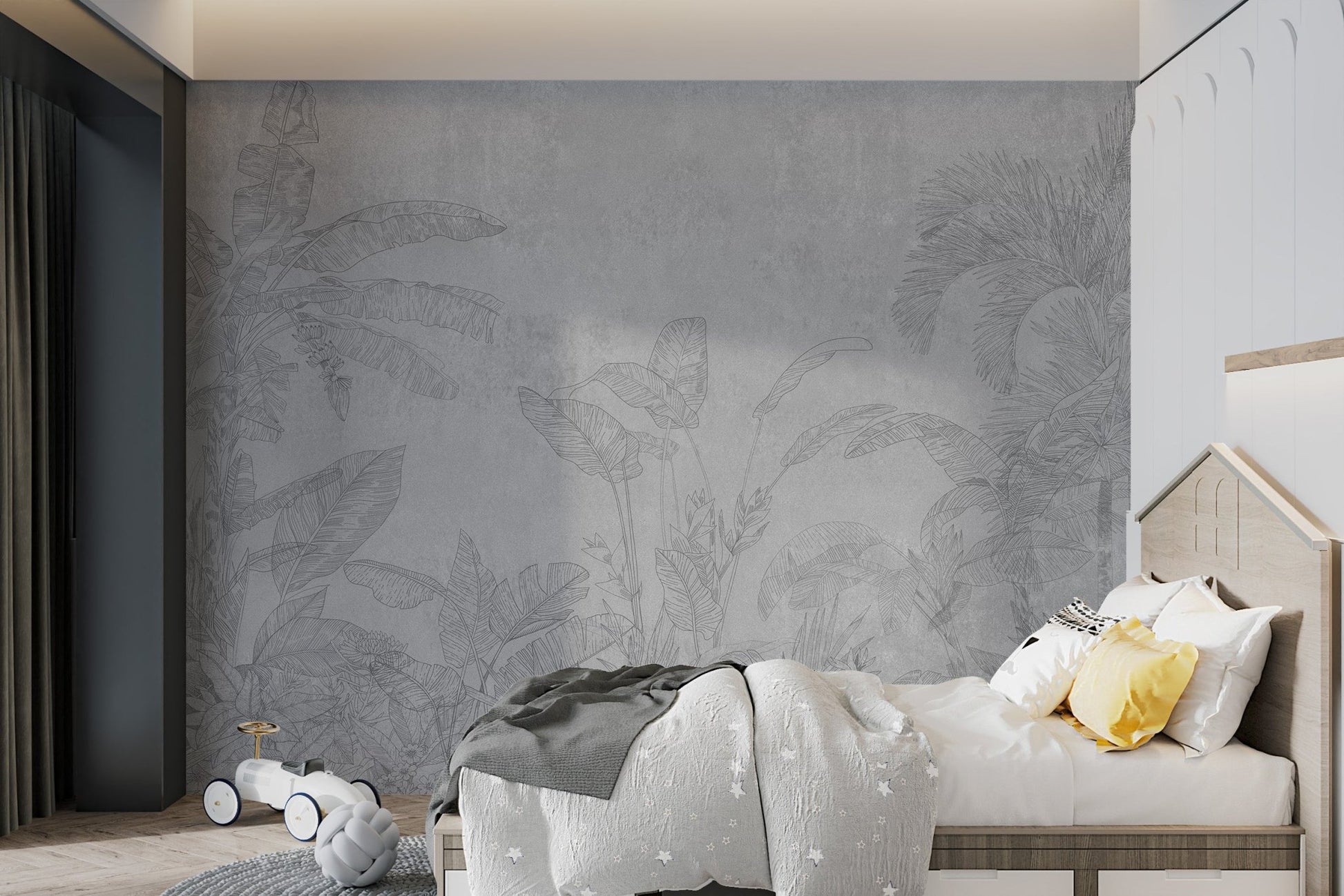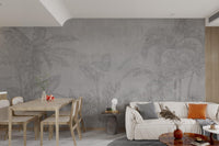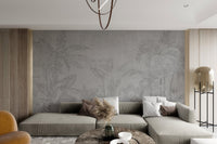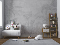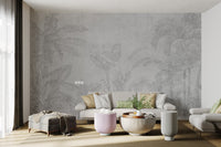 The essence of tropical landscapes is captured through a hand-drawn depiction of banana leaves and palm trees in this black-and-white botanical wallpaper. Soft gray tones ensure it offers a sophisticated neutral background that goes with most decor themes. It's a fine way of bringing in a tropical theme without using vivid colors, making it nice for both home and office settings. The fine details on every leaf make the mural elegant and refined. Invest in this beautiful botanical wallpaper today and help bring a splash of nature into your space. Order now and receive free delivery.