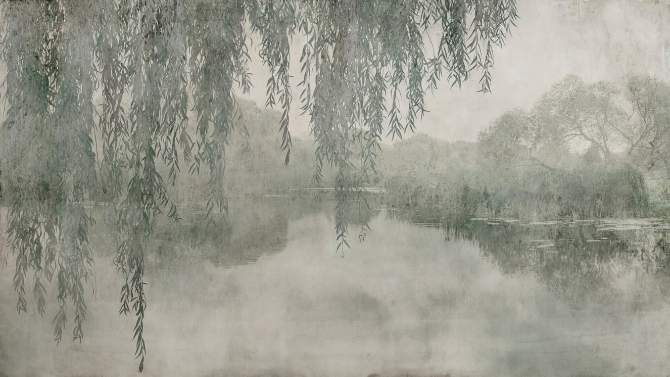 Stylized rainforest foliage wallpaper with rhythmic branches.