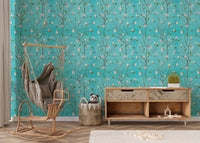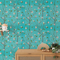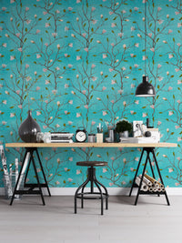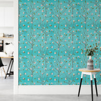 Adorn your living room with a touch of timeless beauty. This turquoise chinoiserie wallpaper, graced with magnolia trees and their flowering branches, weaves a serene elegance throughout any room. Ideal for creating a captivating backdrop, it's more than just living room wallpaper it's a statement of sophistication. Each panel tells a story, a narrative of nature's delicate dance. Invite the classic charm of chinoiserie into your home and watch your walls bloom with style.