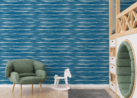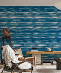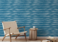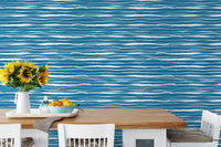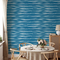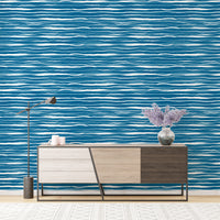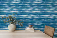 Immerse yourself in the rhythmic serenity of our vector blue ocean waves hand drawn water stripes tile wallpaper. This striped wallpaper captures the essence of the sea with its flowing blue tones, making it an ideal bathroom wallpaper. Each hand-drawn line mimics the gentle undulation of ocean waves, offering a dynamic yet soothing visual experience. It's the perfect backdrop for a refreshing start to the day or a relaxing bath after a long one. Bring the calming influence of water into your home with this elegant blue wallpaper, creating a coastal oasis where you can unwind in style.