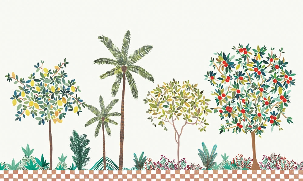 Verdant mural wallpaper with lemon tree design