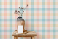 Vichy Pattern Pastel Gingham Stripe Geometric Wallpaper