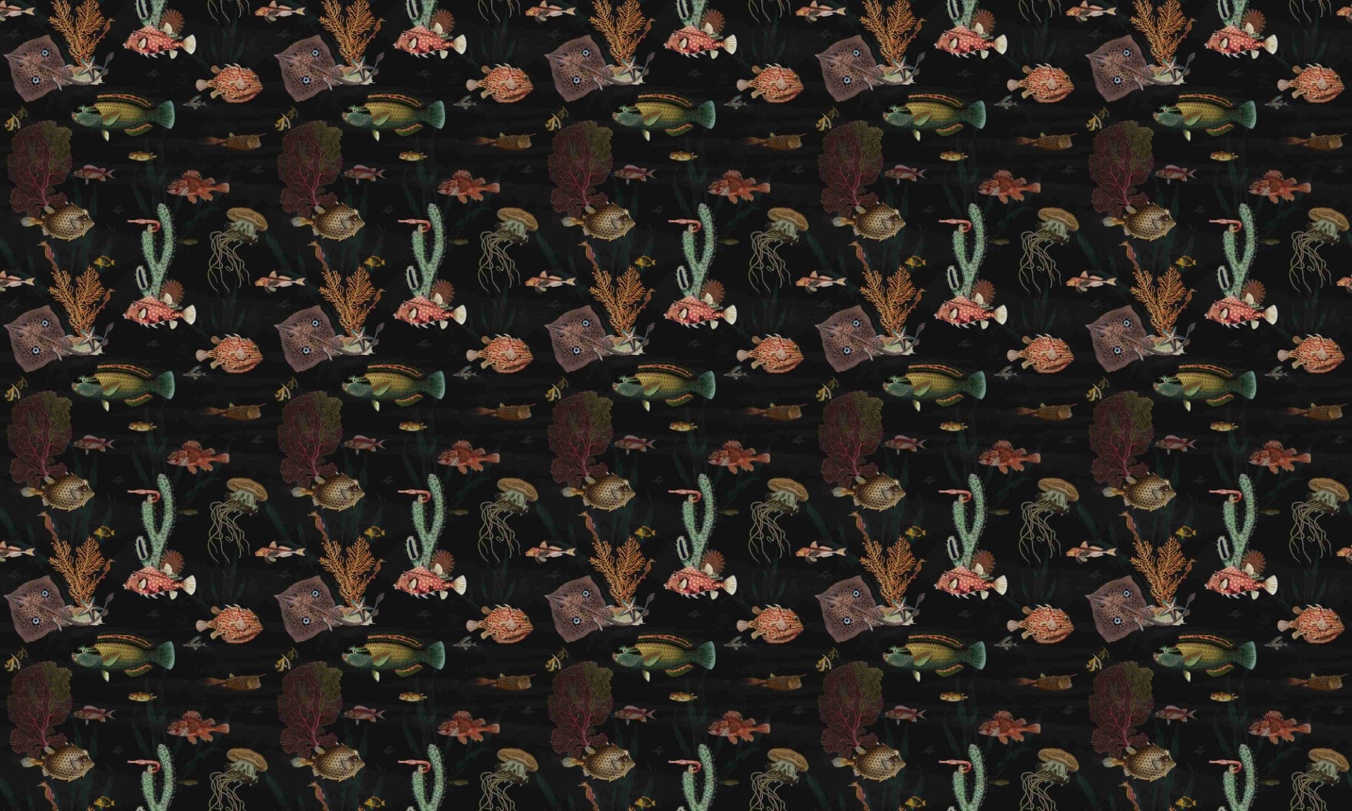 Timeless gwrace-the vintage aquarium fish pattern wallpaper for your bathroom-the black backdrop serves to enhance the finely detailed fish and marine life pattern, contributing sophistication and charm to an interior. This design stands proud on its own or fits perfectly into any modern or vintage-inspired bathroom décor. Crafted from high-quality, moisture-resistant material, its durability and ease of maintenance make it fantastic bathroom wallpaper. The result is transforming your walls-they become an underwater masterpiece while being works of functionality and artistry. Your bathroom will really come alive with this beautiful marine discovery wallpaper inspired by a deep sense of character and style.