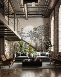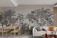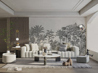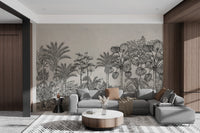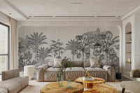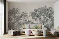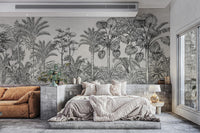The Vintage Tropical Forest Wallpaper is a mural with the largest design of exotic foliage and tall palm trees, bringing to any room a unique appeal. Designed for one who loves the natural elements with traditional style and elegance, it is monochromatically charming in every detail, sweeping palms to marked jungle leaves. The tropical wallpaper was designed to be a statement piece in any room. It would seamlessly find its way into any living or bedroom, remaining gorgeous and giving the setting a tranquil atmosphere. Buy now and bring this beautiful piece of elegance into your home.