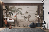 An exotic plant jungle wallpaper mural will remind you of a lush, tropical landscape full of vibrant foliage, palm trees, and warm Sepia tones. This beautiful design brings in a vintage style infused with the soothing beauty of nature, ensuring it enhances any room with an exotic yet classic appeal. The intricate details about the plant in this mural add depth and transform your wall into a captivating jungle scene. Add a touch of the wild with this breathtaking wallpaper mural—it's time to breathe some nature into your walls. Get yours now and have it delivered free.