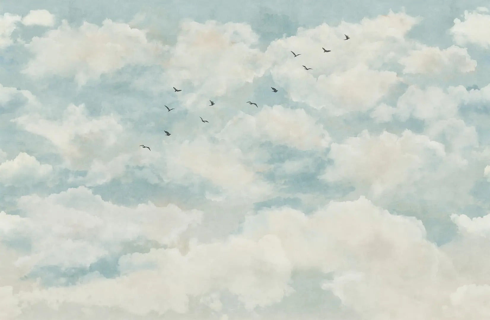 Soft watercolor clouds and birds wallpaper for tranquil spaces