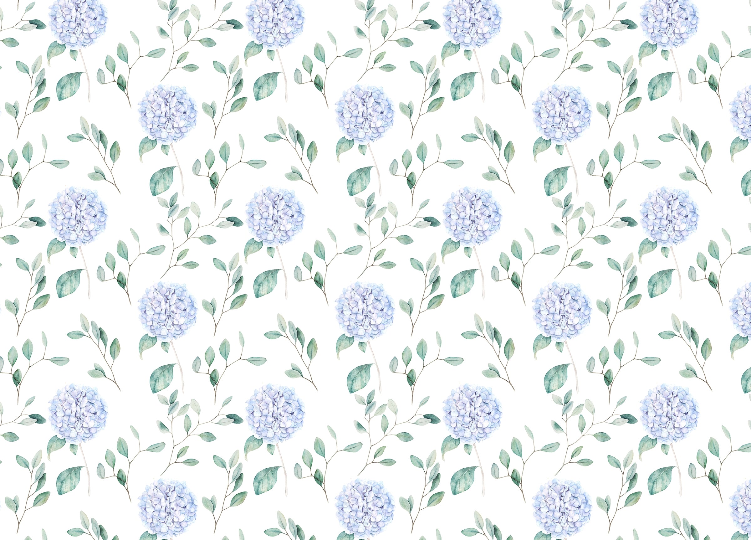 Embrace the subtle charm of our watercolor hortensia flowers and branches wallpaper, a perfect complement to your dining room's decor. This wallpaper's delicate hand-painted effect brings a lively yet sophisticated floral pattern to your walls, inviting a fresh, botanical vibe to meal times. The interplay of verdant foliage and soft blue Hortensia blossoms creates a harmonious backdrop for engaging conversations and delightful dinners. Make every dining occasion special with this exquisite dining room wallpaper, designed to infuse your space with natural beauty without overpowering it.